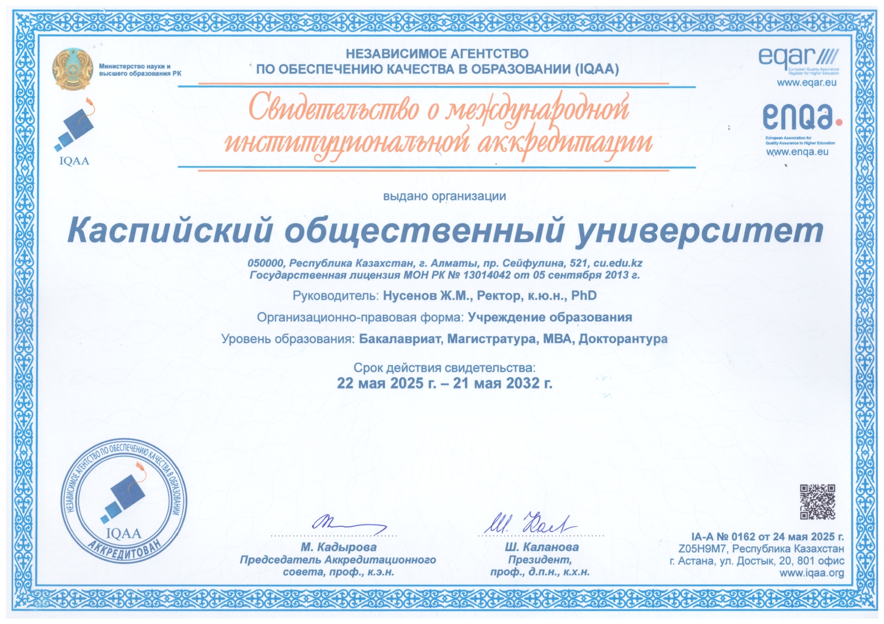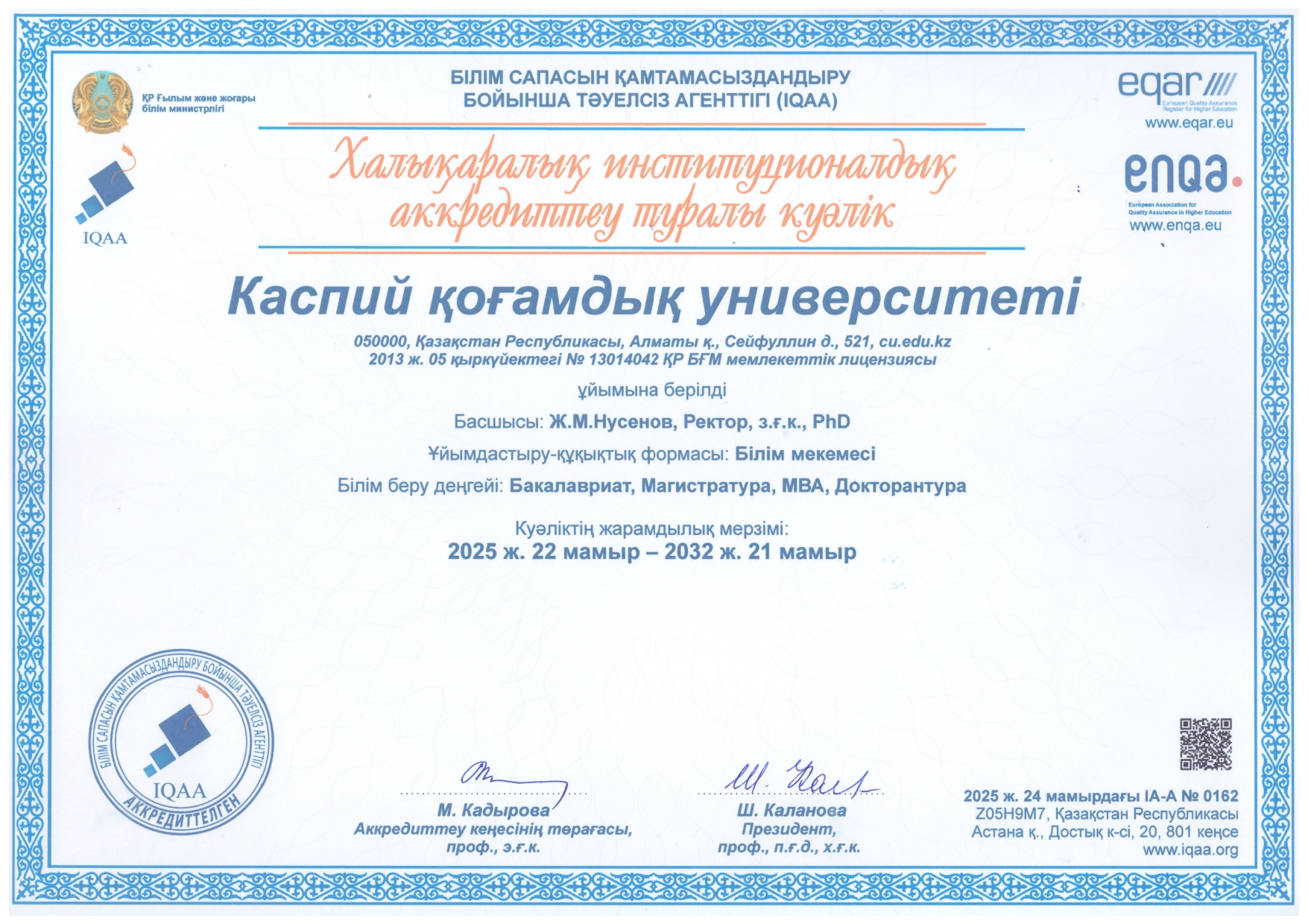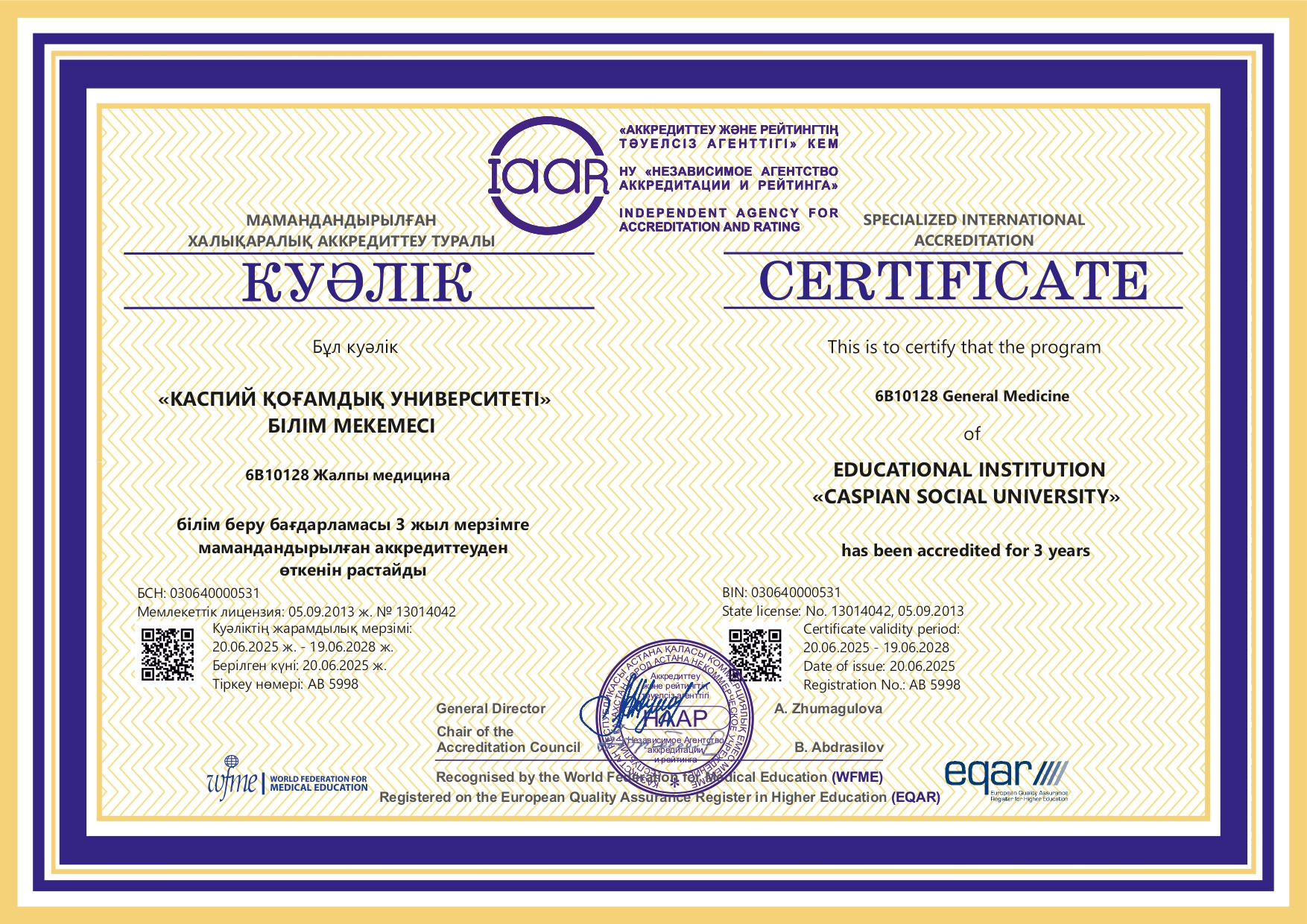 | 20.06.2025 — 19.06.2028 | 6В10128 Общая медицина 6В10124 Медицина |